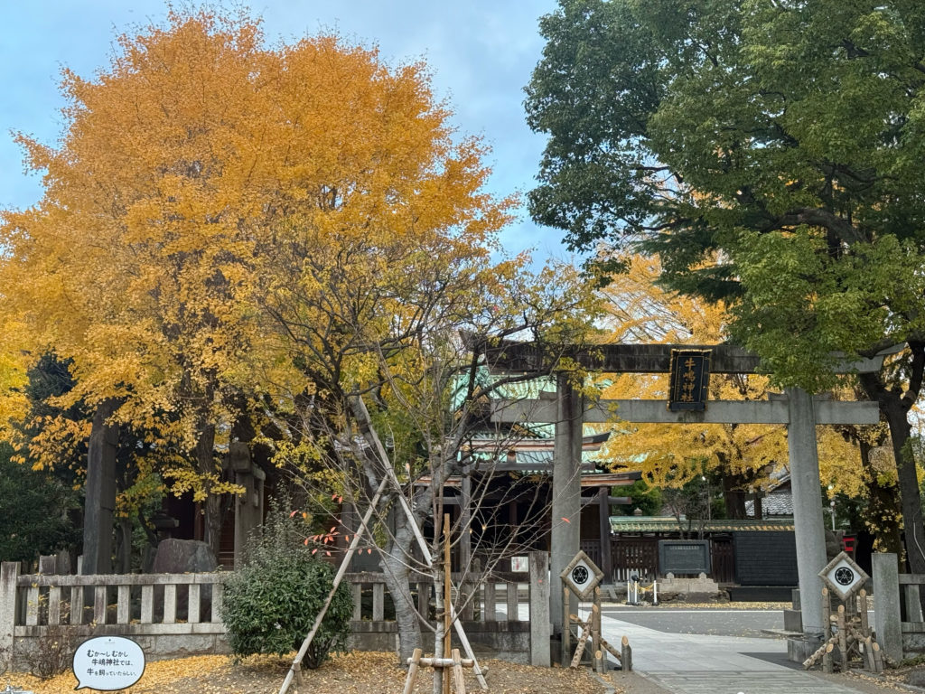 写真は隅田公園内の牛島神社。いちょうが美しい。